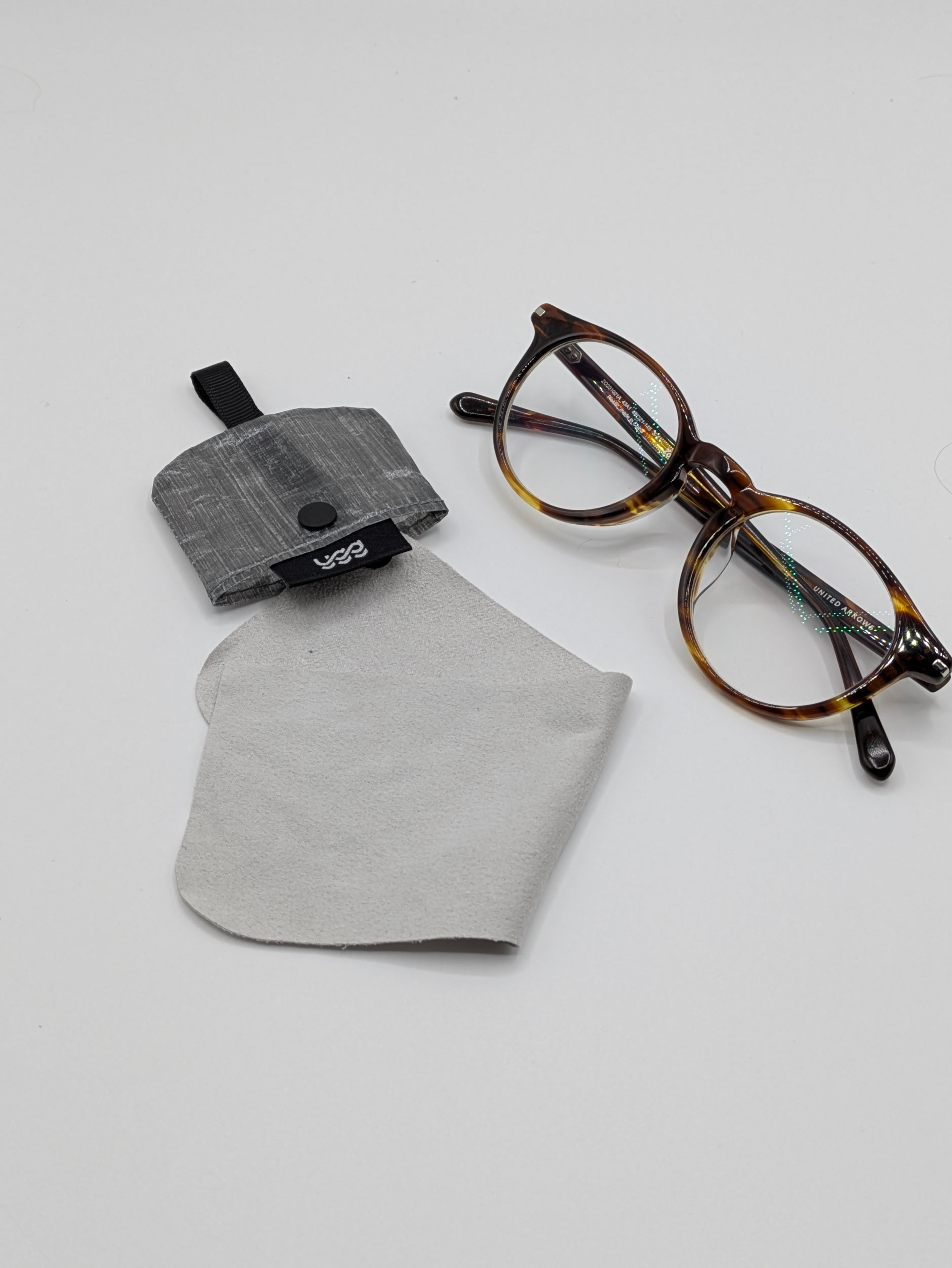※上部のループにはカラビナを。メガネ拭きにはスナップボタンが付いているので取り外して洗濯可能。